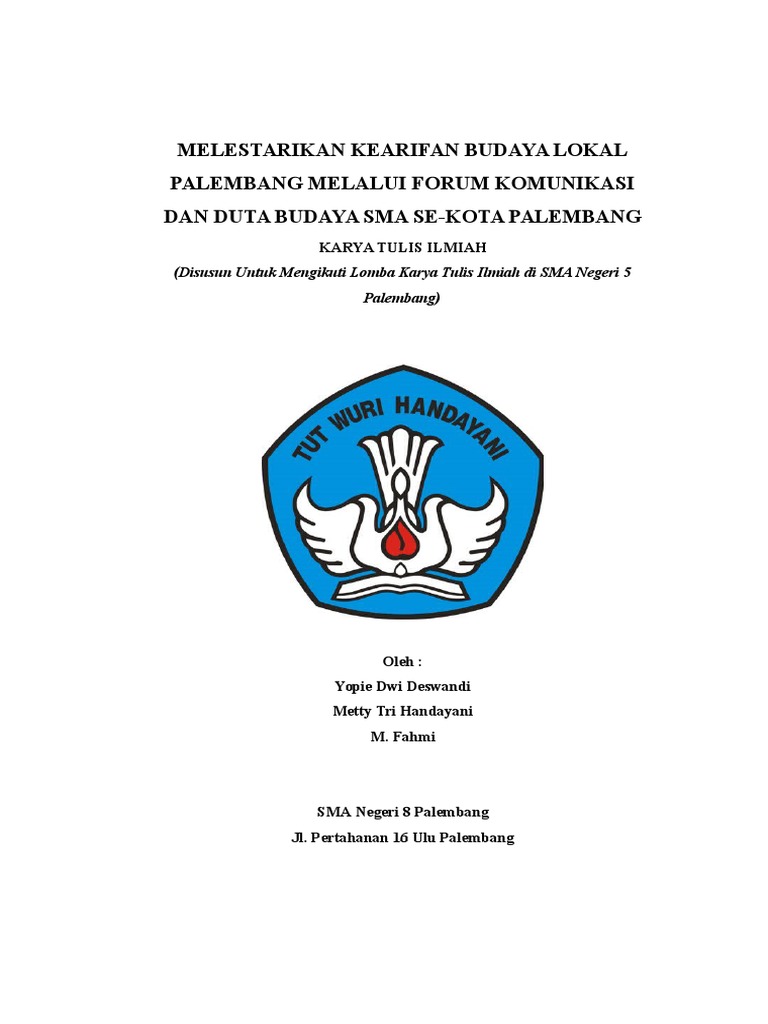 Cover Karya Tulis Ilmiah Sma : Karya Tulis Ilmiah Sosial Research Papers Academia Edu : Selain itu, sebagai salah satu syarat untuk mengikuti ujian.. Tentunya kami tidak menganjurkan anda untuk melakukan copy paste karena sebagaimana yang telah kita semua ketahui melakukan plagiarism adalah kejahatan akademik. Tentunya anda memerlukan contoh cover makalah yang benar agar dapat menunjang kesempurnaan makalah. Dalam sebuah karya ilmiah pastinya harus ada cover atau sampul yang berada pada bagian terdepan dari karya ilmiah tersebut. Pastinya sebagai pelajar tentu tidak lepas dari tugas yang diberikan guru atau dosen, entah tugas tulis atau tugas membuat makalah. Satu tim, maksimum, terdiri dari 2 (dua) orang siswa/i.