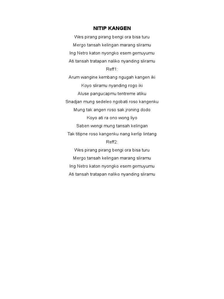 C em am em f em dm g 2x. A bm muga krasa ning wong kaen. Dm g c mung pangangapurane durung biso nemoni. Nitip kangen · ngamen 5 · ditinggal rabi · mung biso nyawang. Em am liwat angin sore. Gupita chord adalah situs penyedia kunci gitar dan kunci ukulele lirik lagu dengan . Kumpulan chord kunci gitar dan lirik lagu dangdut,campursari,koplo terpopuler. Chord gitar eny sagita oplosanchord gitar eny sagita oplosanintro am f e f am (2x) amopo ora eman duite fgawe tuku banyu s… read more. Dm….bb….c….f… gm c c (2x). Am em ora biso turu. F em mergo tansah kelingan. Lagu berjudul nitip kangen yang dinyanyikan oleh eny sagita feat atut adalah lagu dangdut yang biasanya dibawakan ketika manggung. F … gm c f ( 2x ) f f am dm liwat angin sore … titip kangening ati gm c f numpang ngapurane durung biso nemoni.